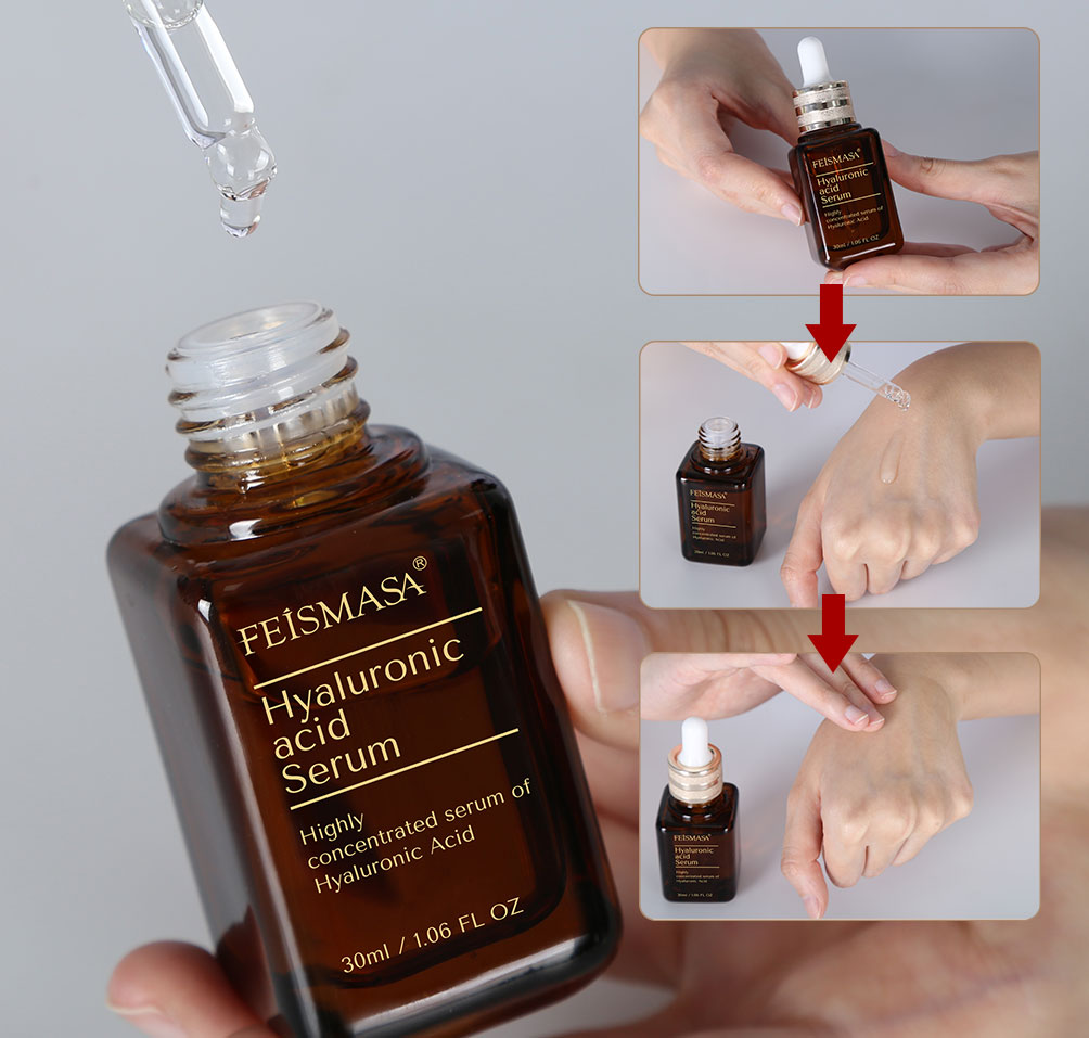Глубокое увлажнение: Увлажняющая эссенция богата увлажняющими ингредиентами, такими как гиалуроновая кислота, глицерин, гиалуроновая кислота и т.д., которые могут быстро проникать в глубокие слои кожи, восполнять влагу и удерживать ее, обеспечивая длительный увлажняющий эффект.